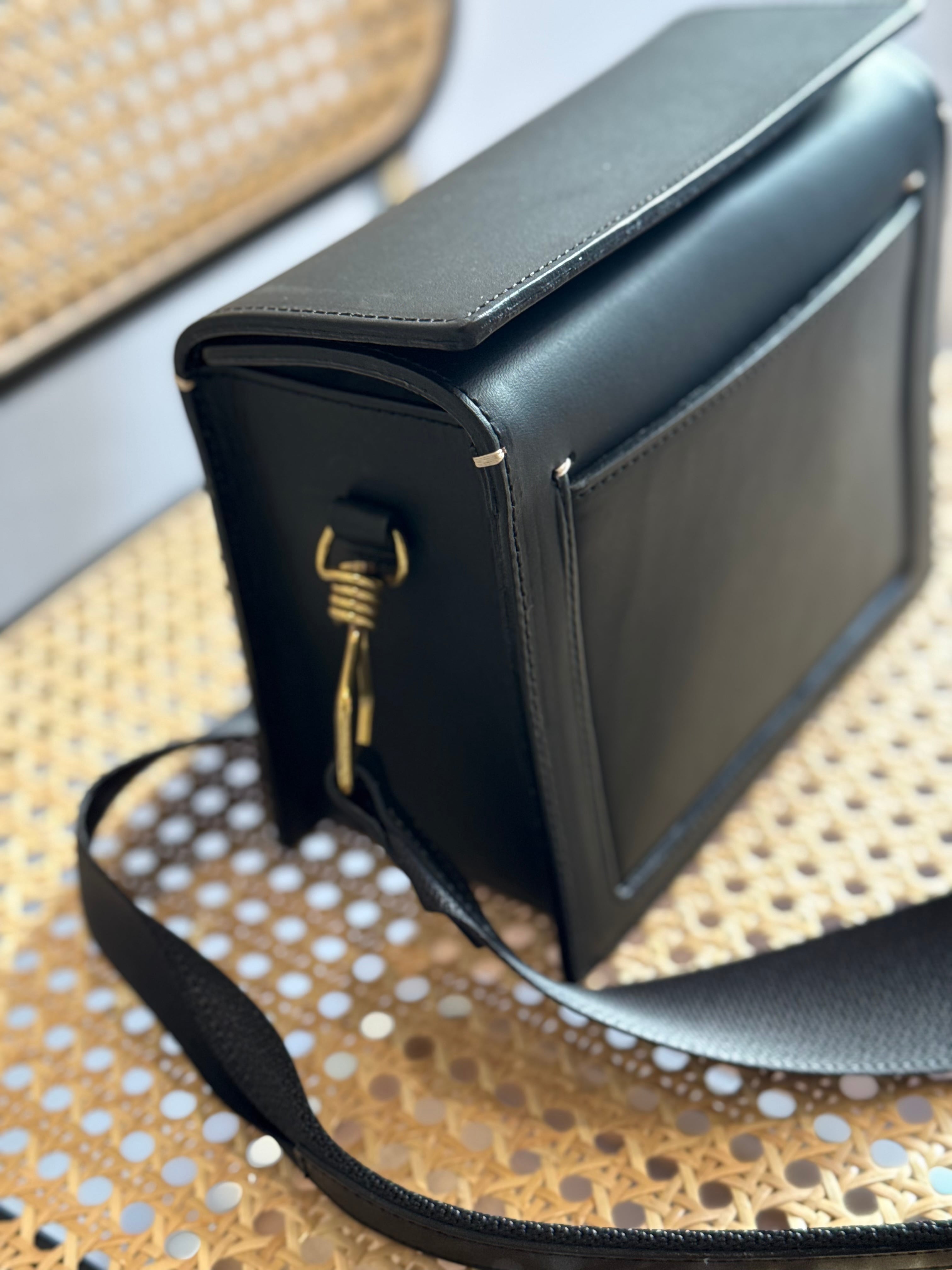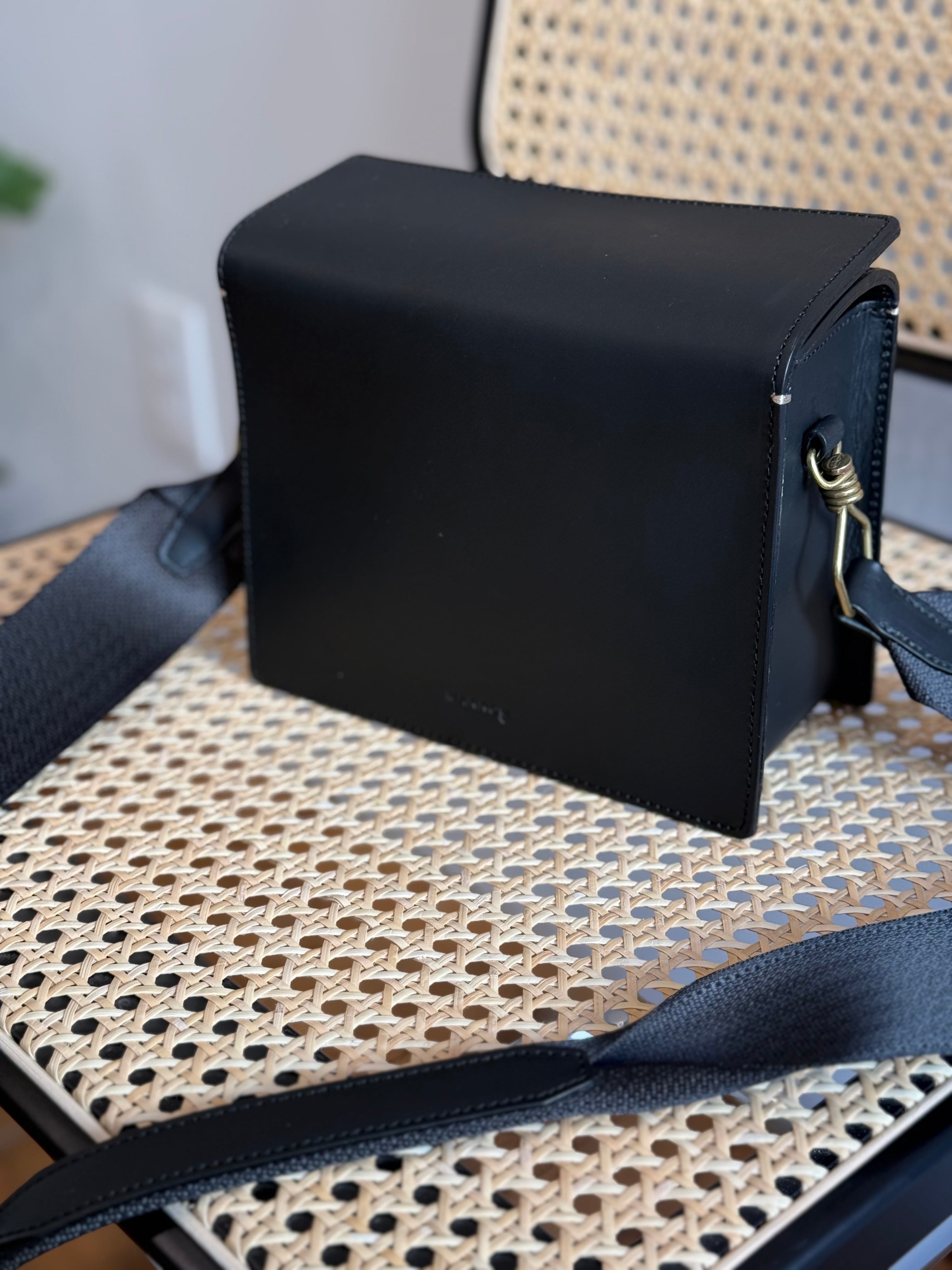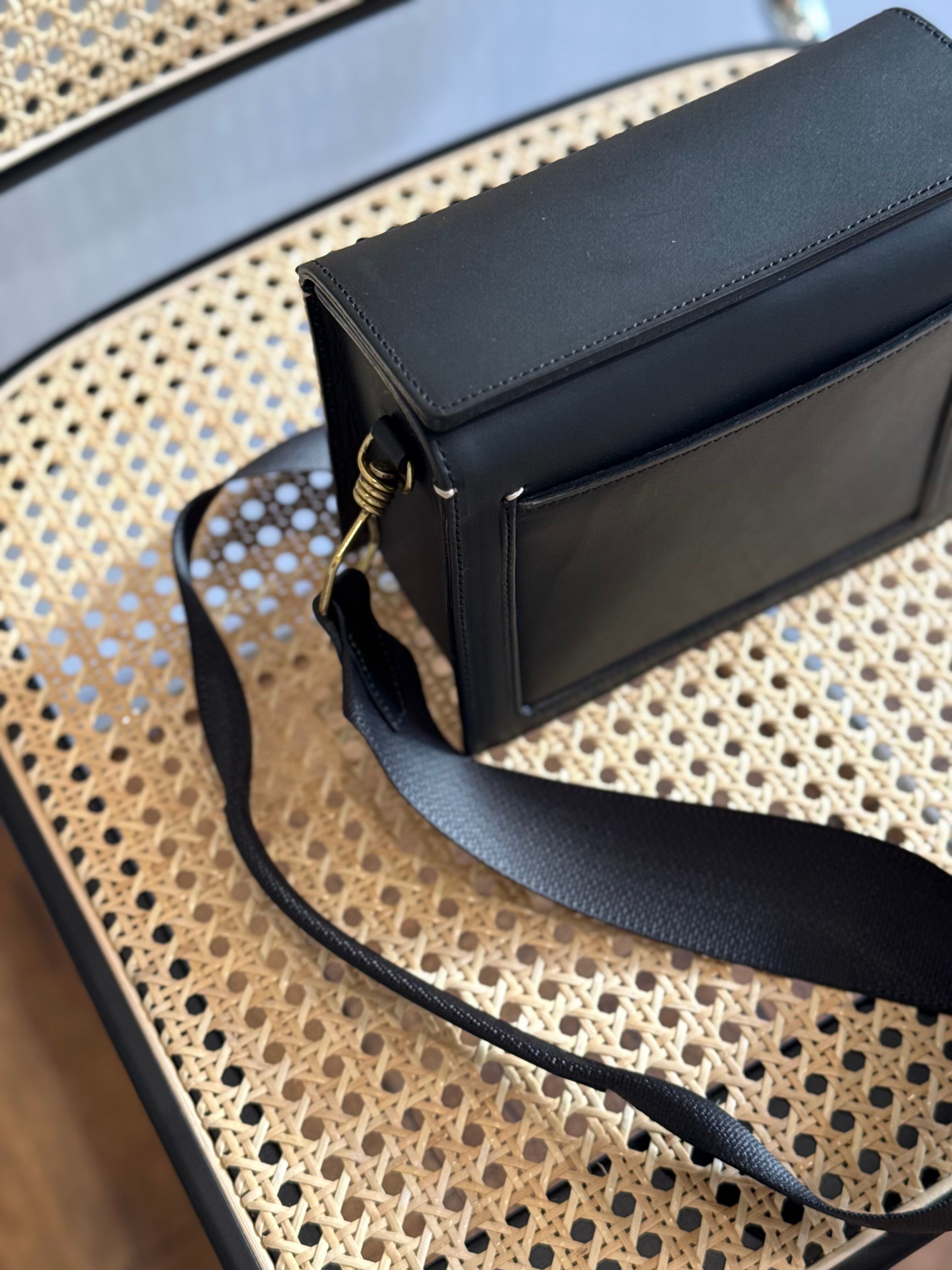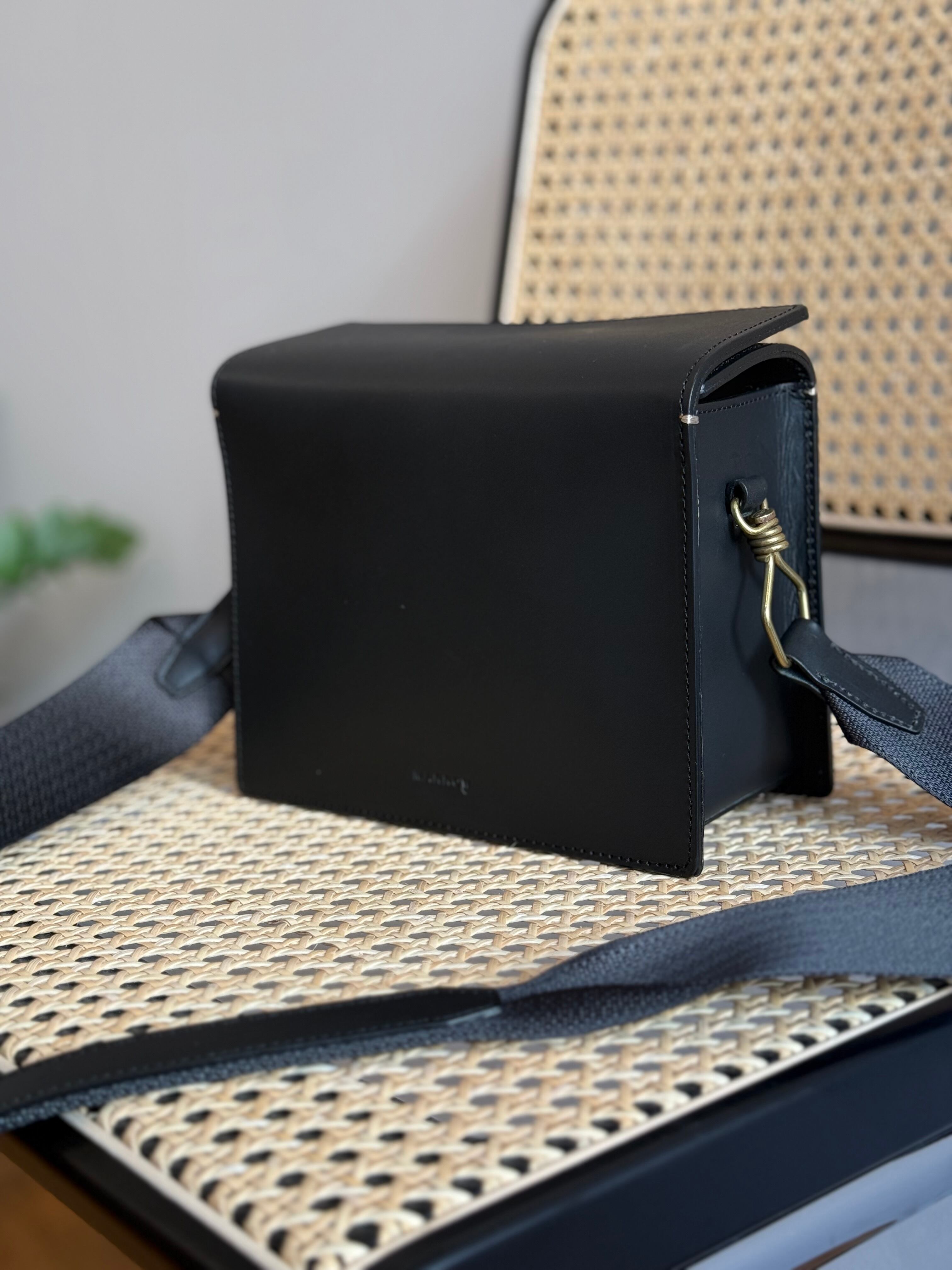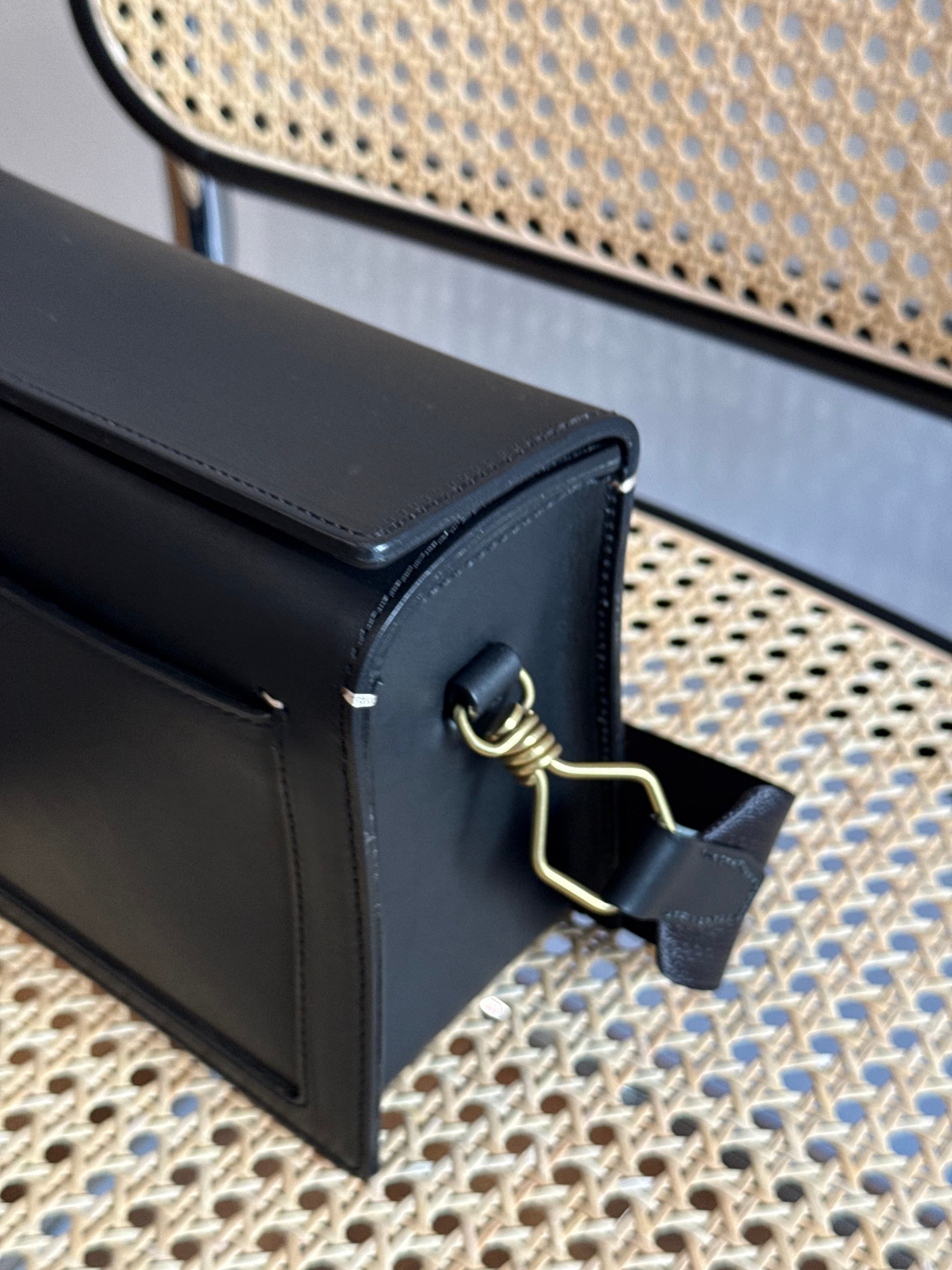 コンパクトな箱型のフォルムが特徴的なショルダーバッグです。