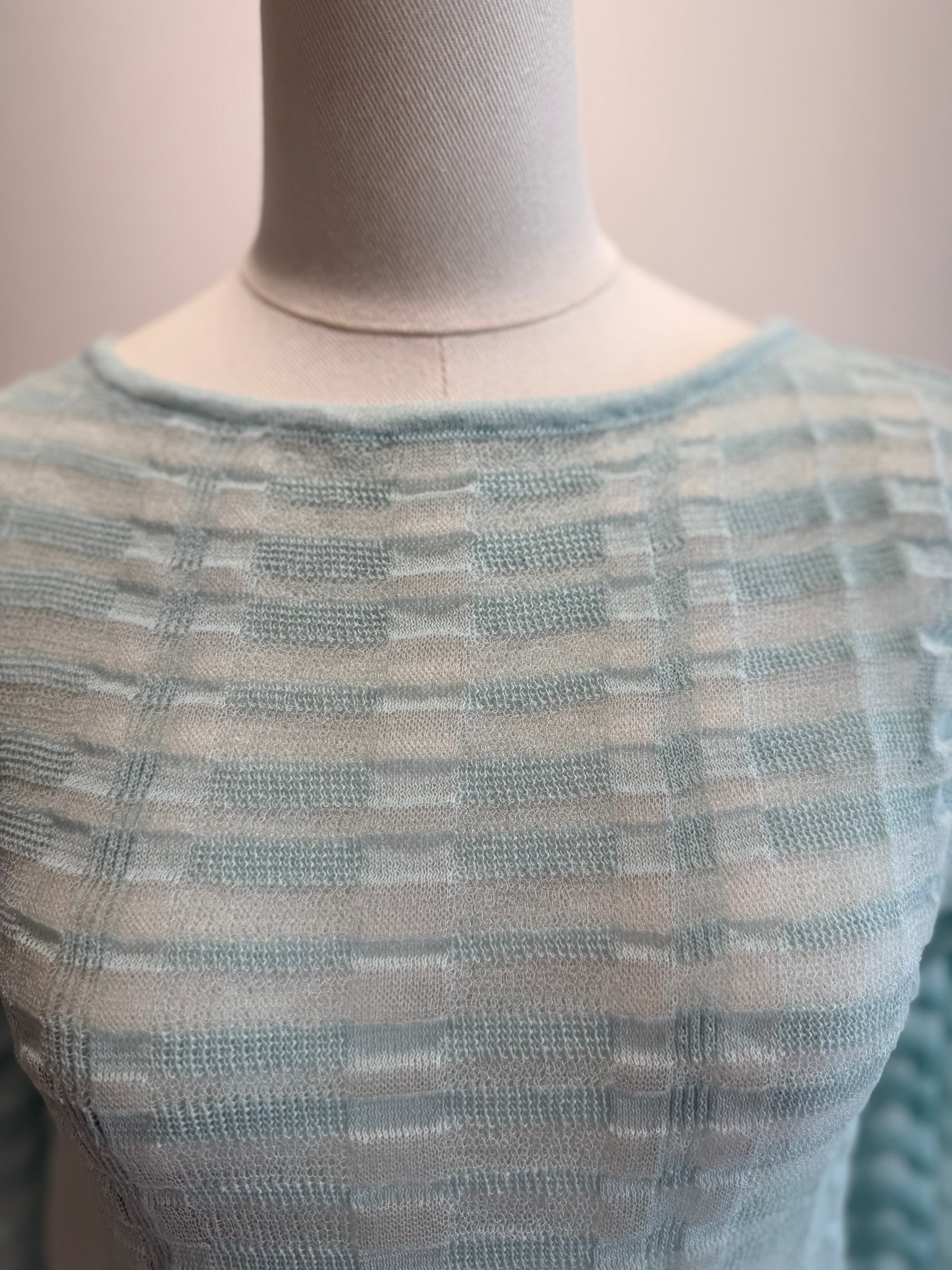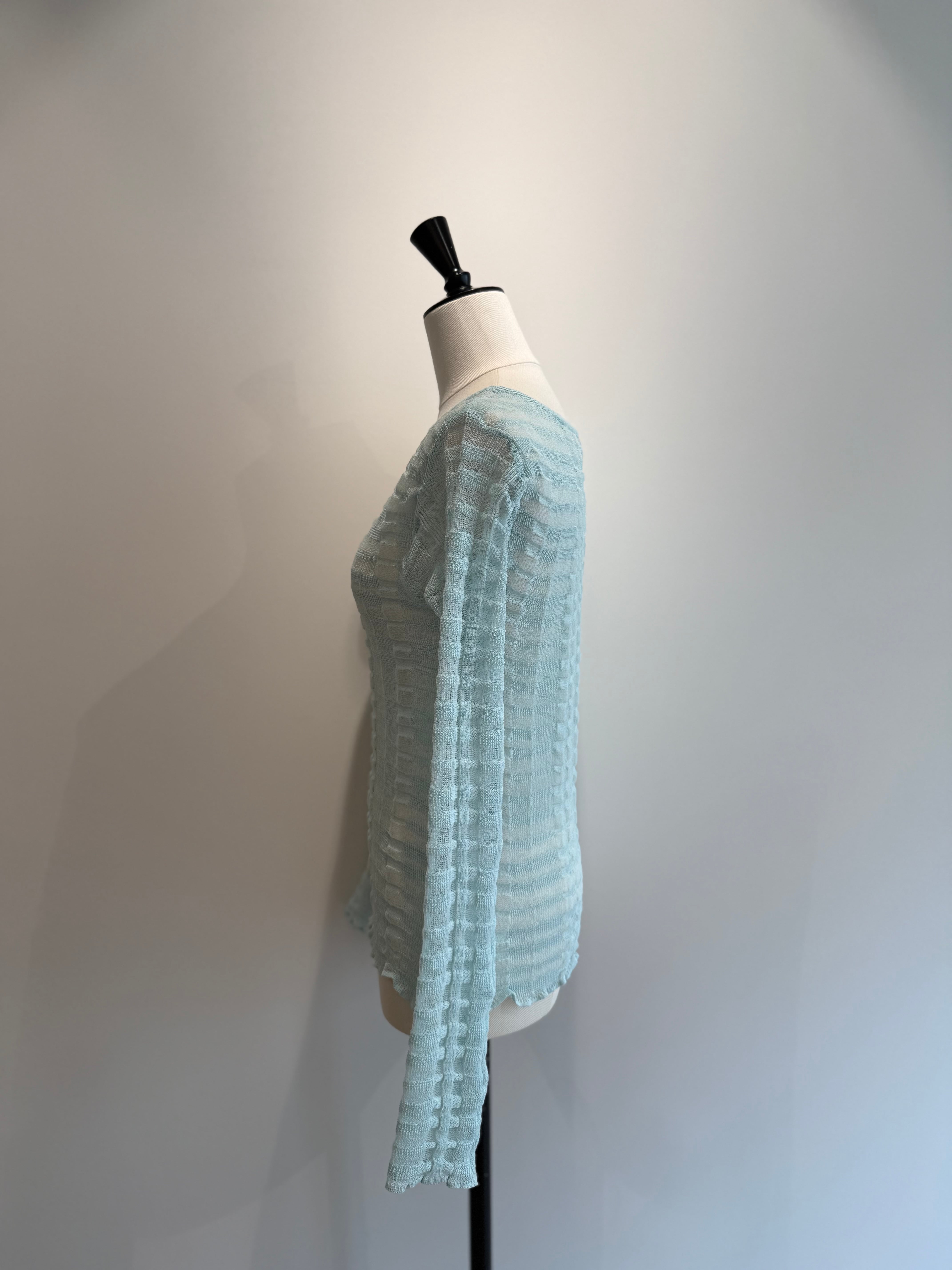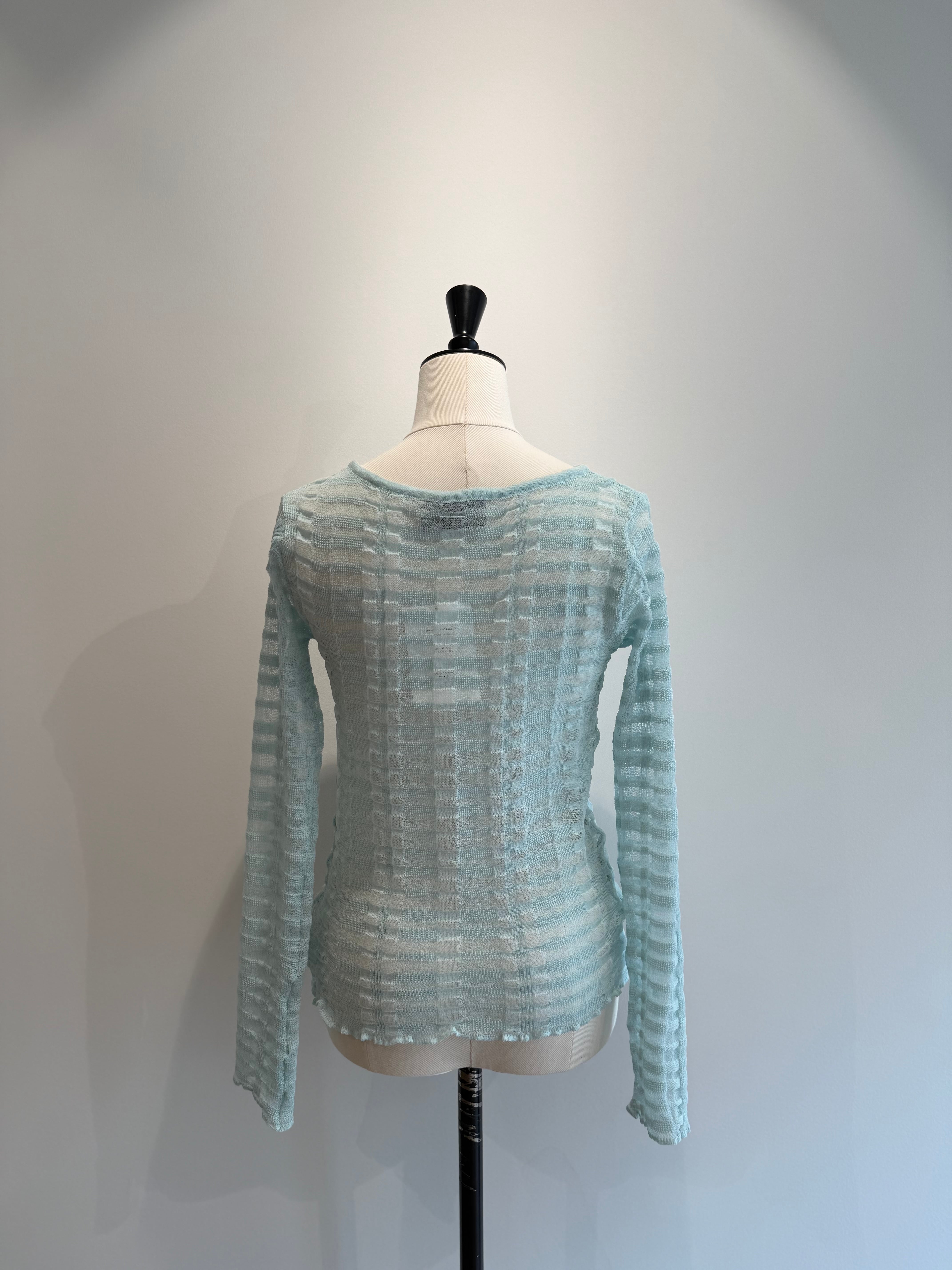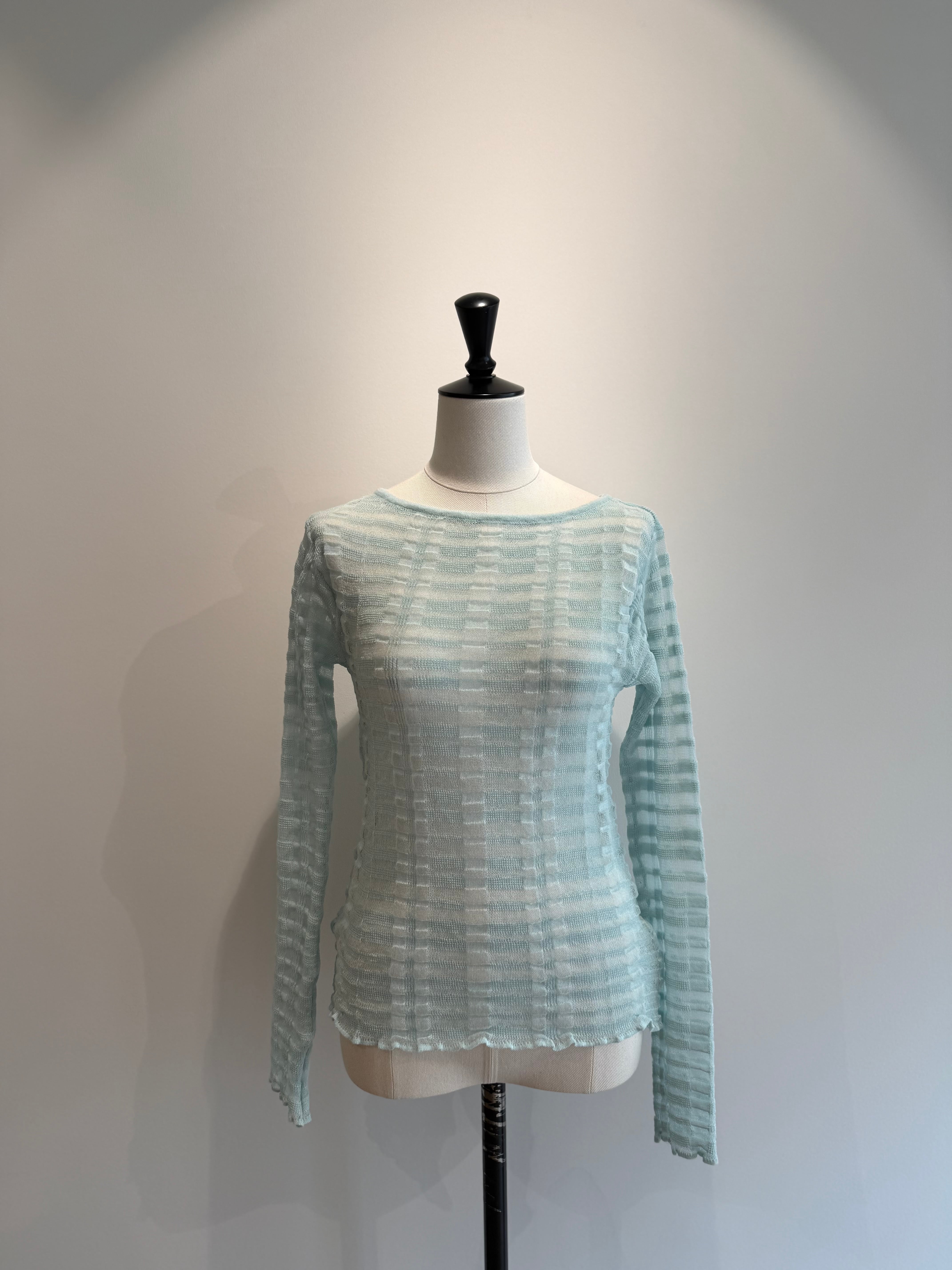 TAN/26SS-13 FLOWING CHECKED KNIT PULLOVER AQUA
