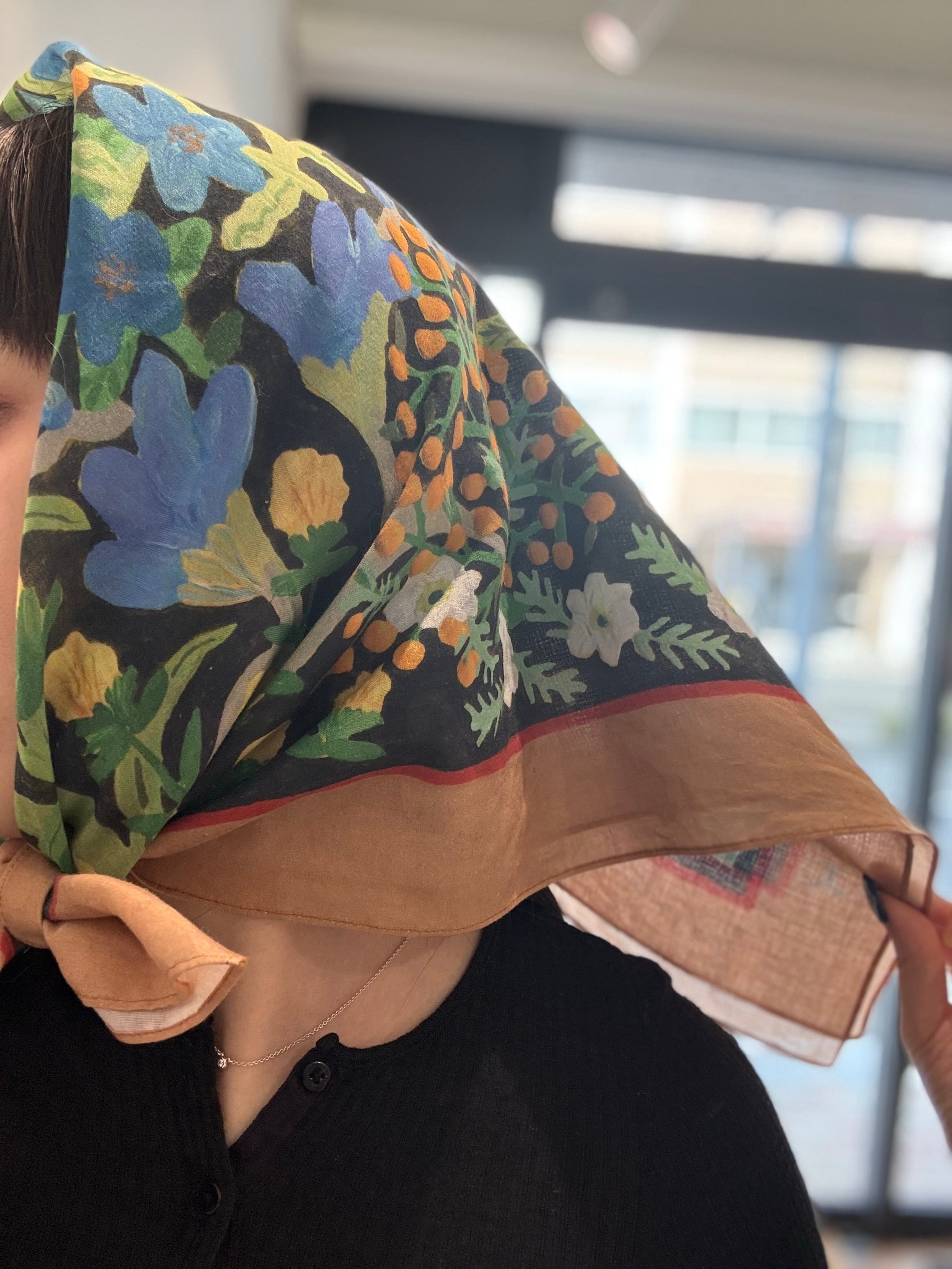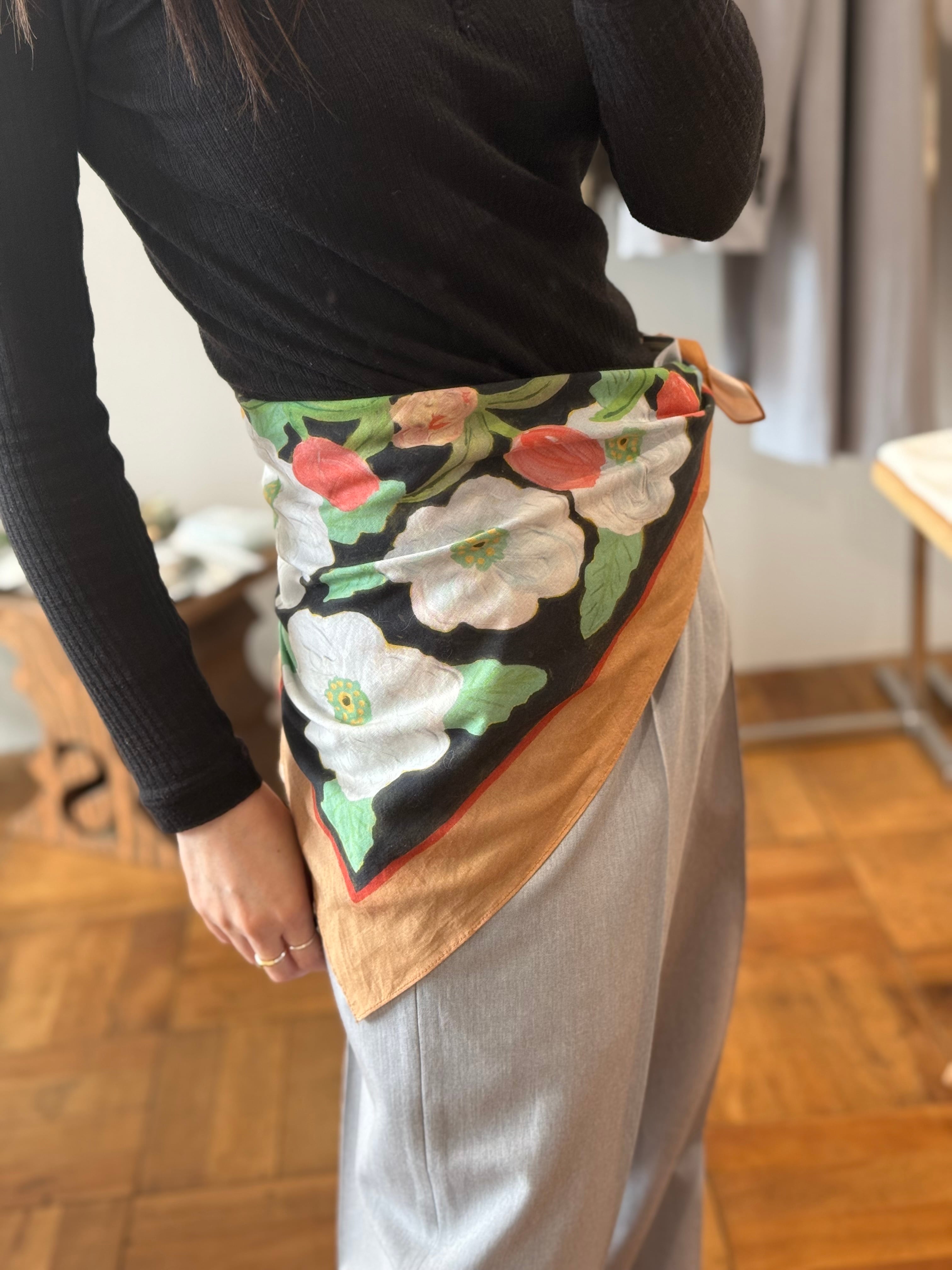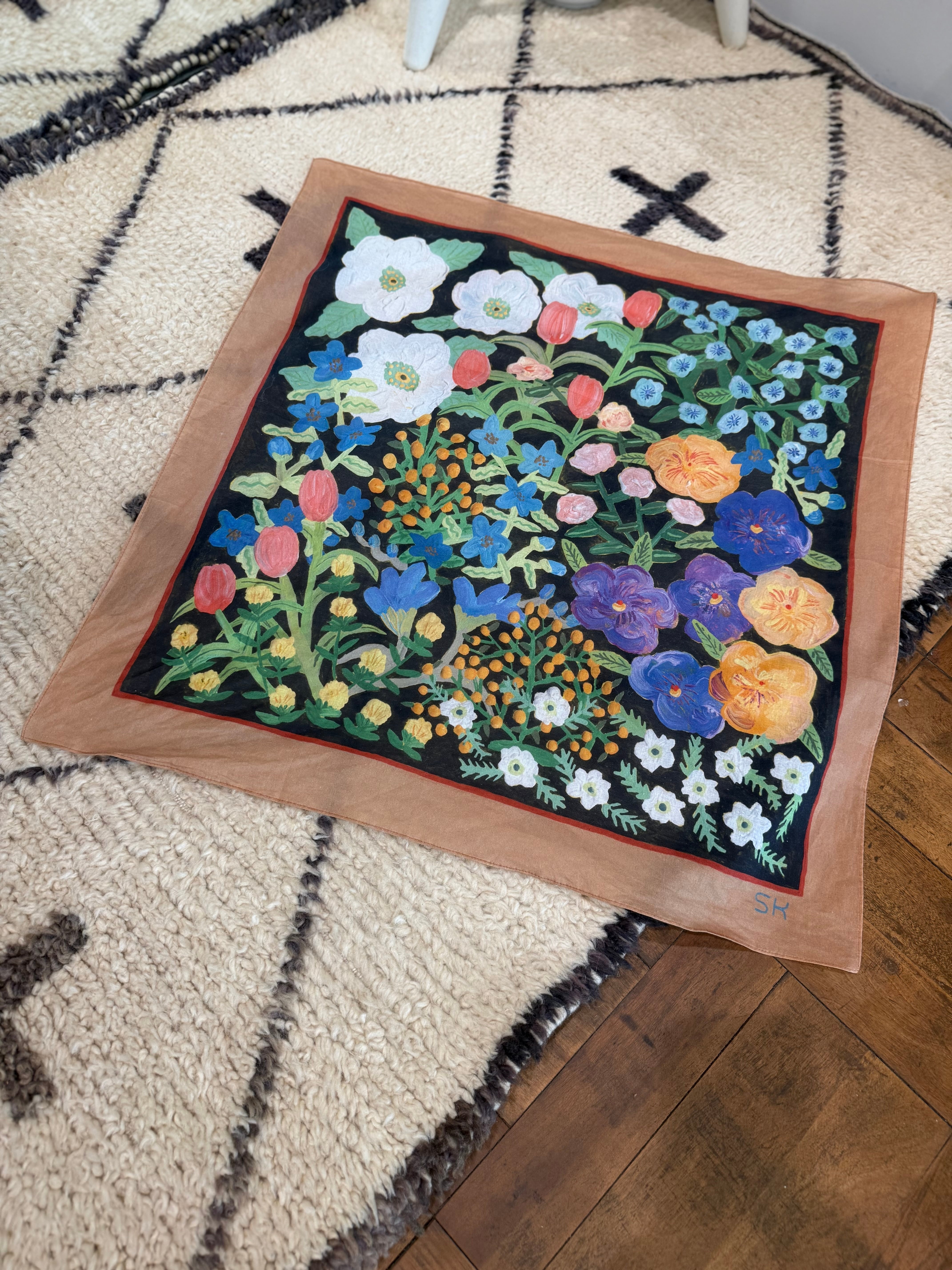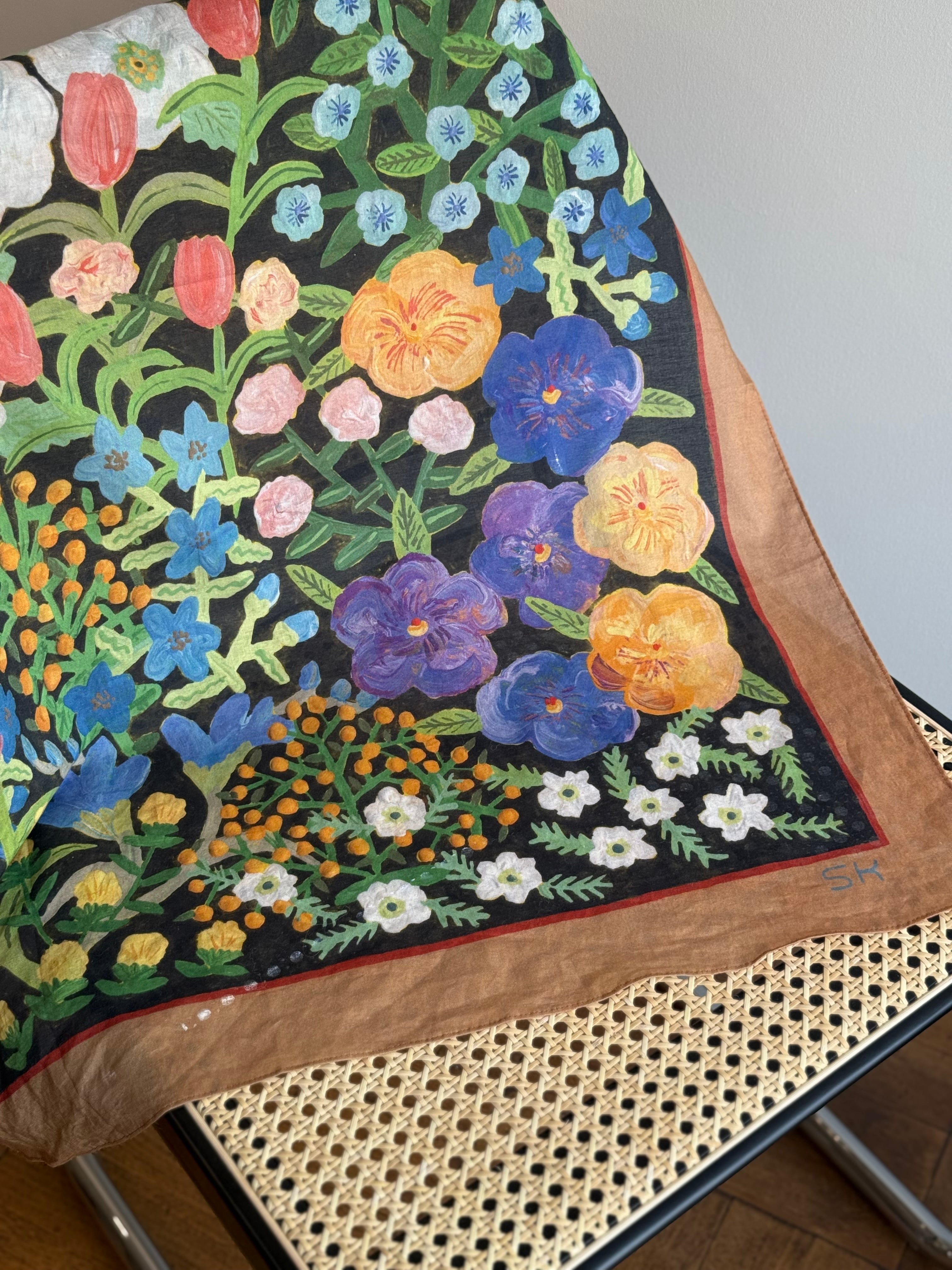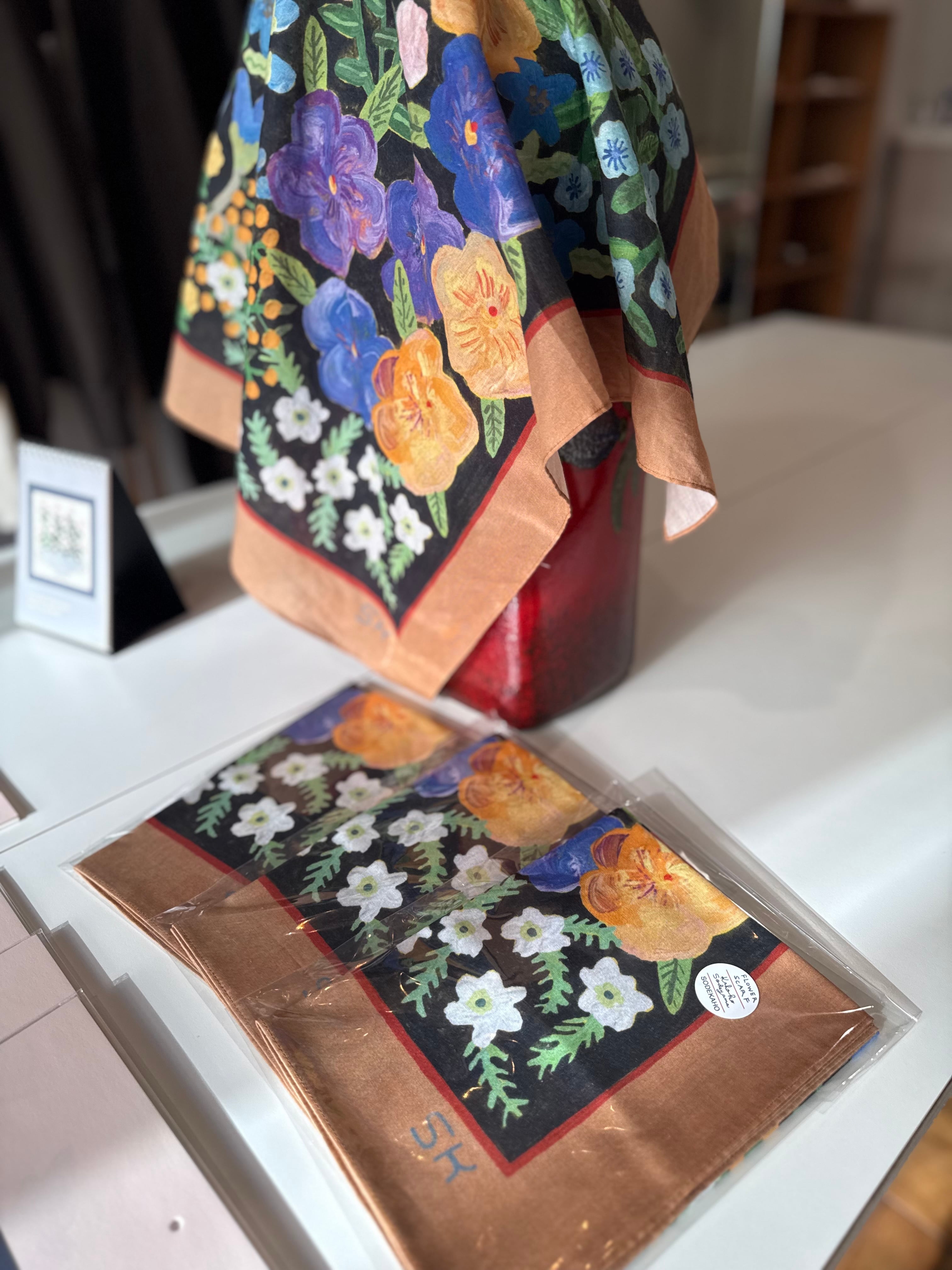 個展”anthem"で描き下ろした花柄のスカーフです。