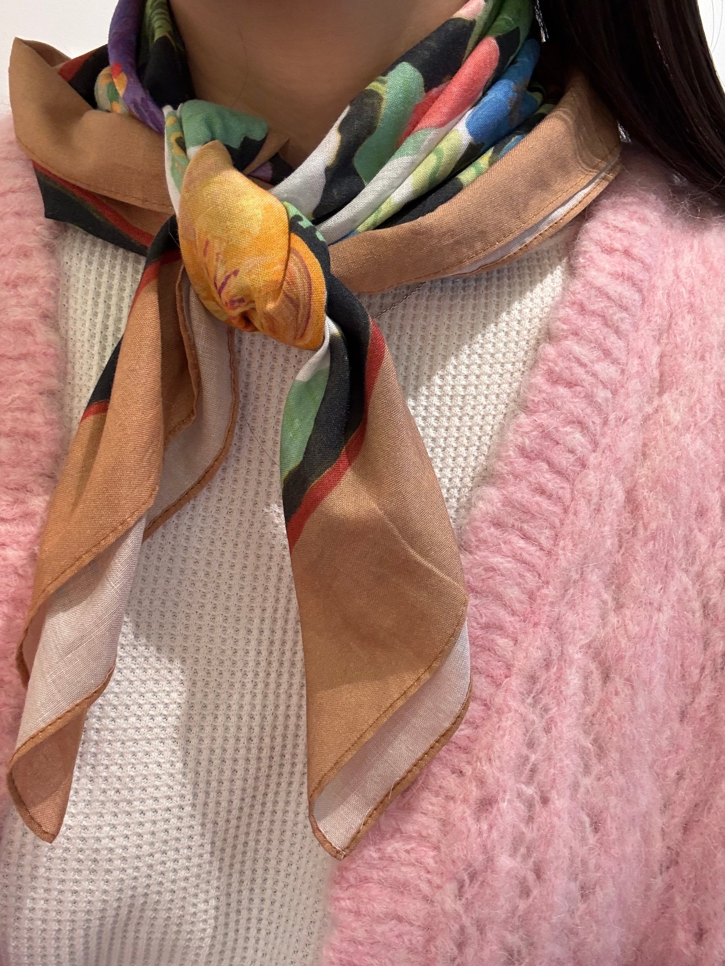 首に巻いたり、頭に巻いたりと大判で使いやすい大きさ。