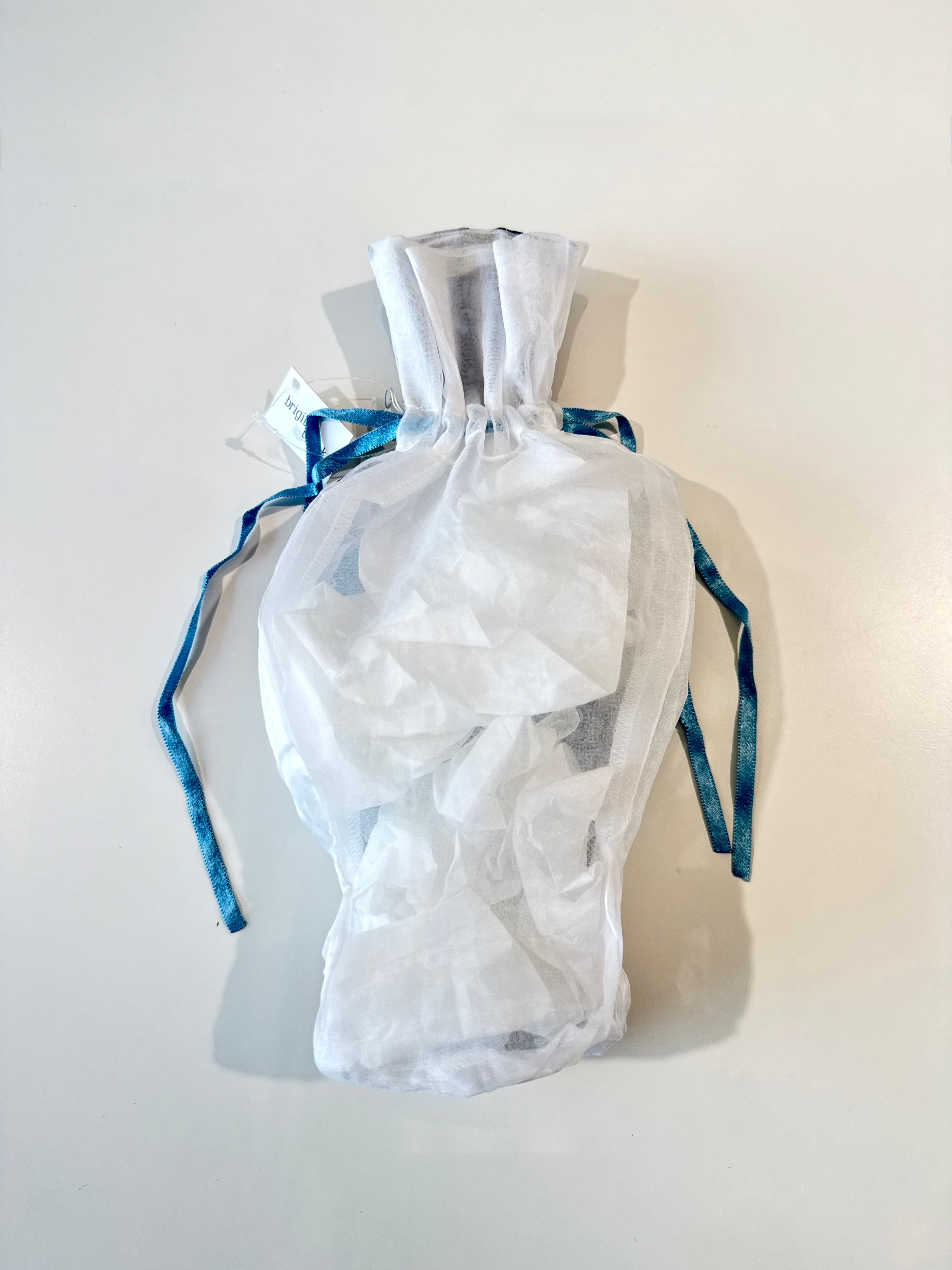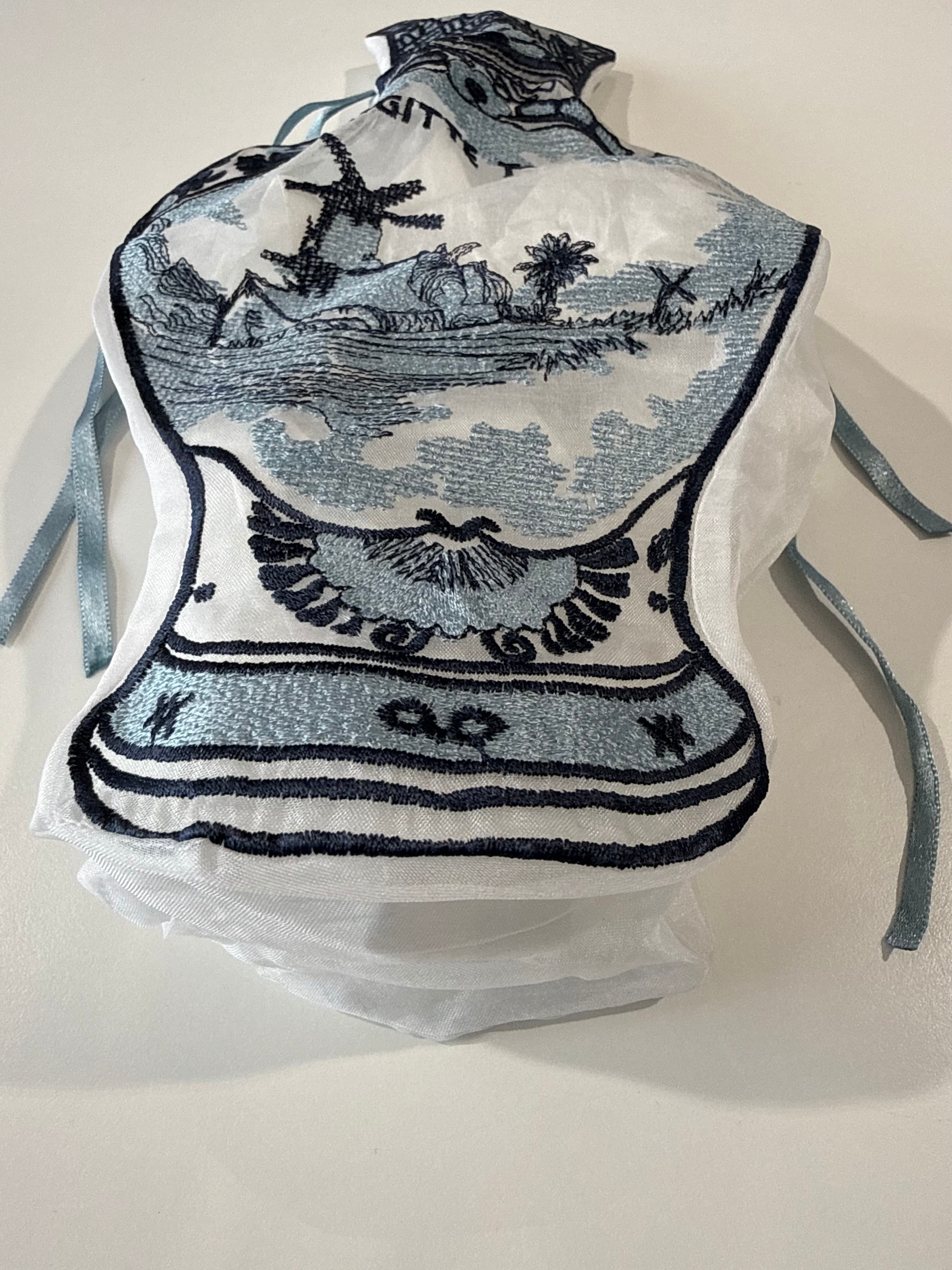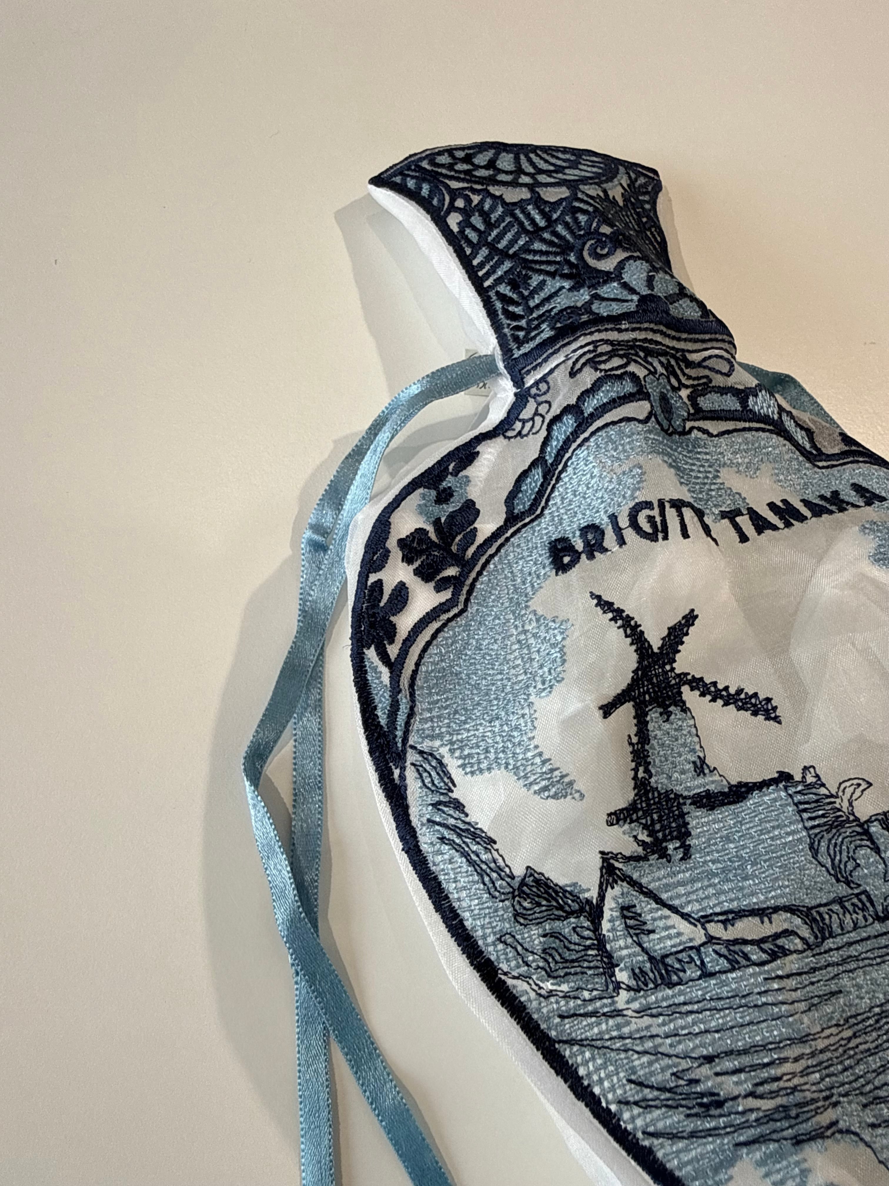オリジナルのフォルムにデルフトブルーの美しい刺繍が施され、個性的でエレガントな印象を与えます。