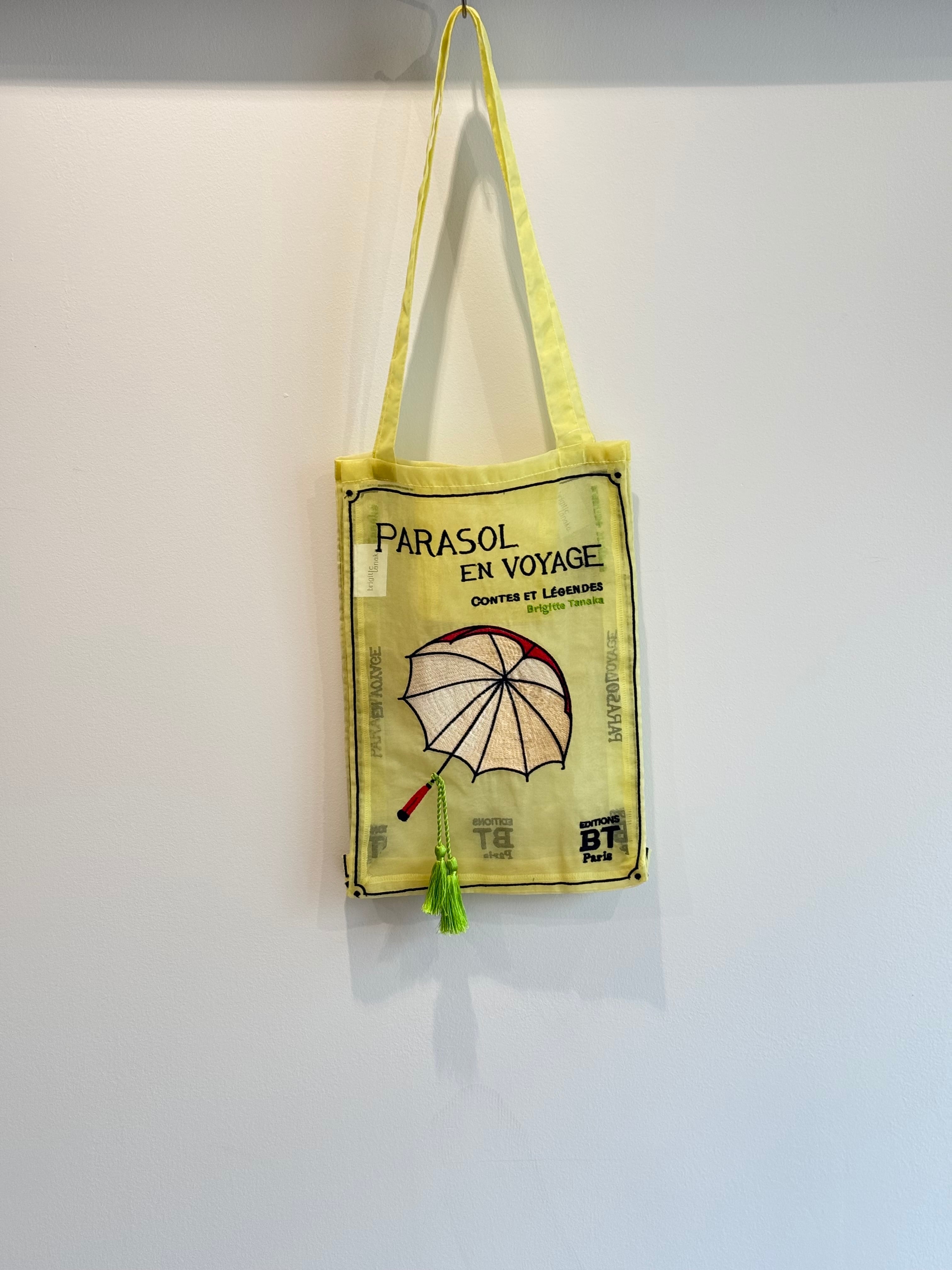 架空の書籍「PARSOL VOYAGE」の表紙をイメージしたバッグ。シヨルダーストラップ、ハンドル、マチがついており、収納力も抜群です。