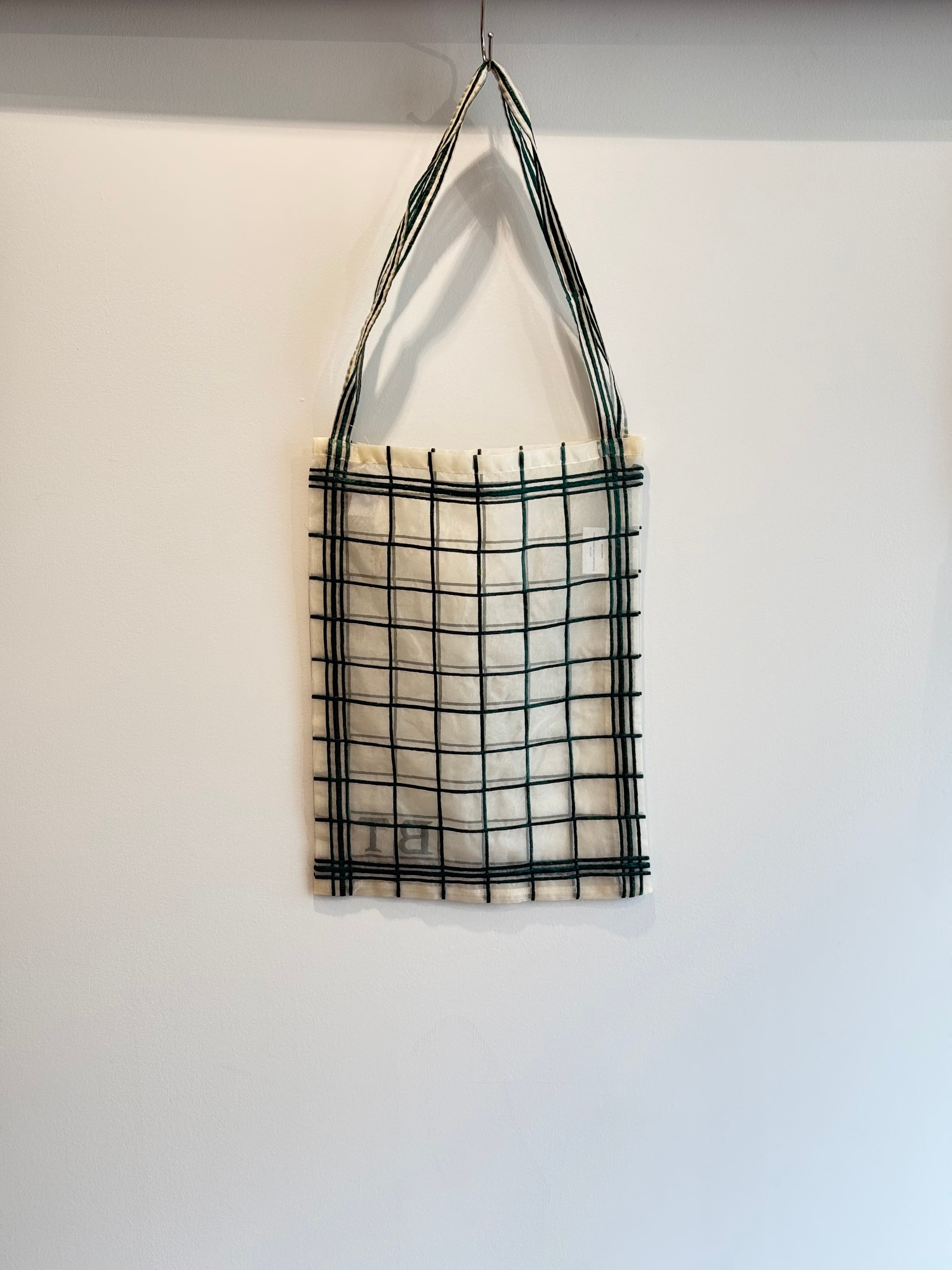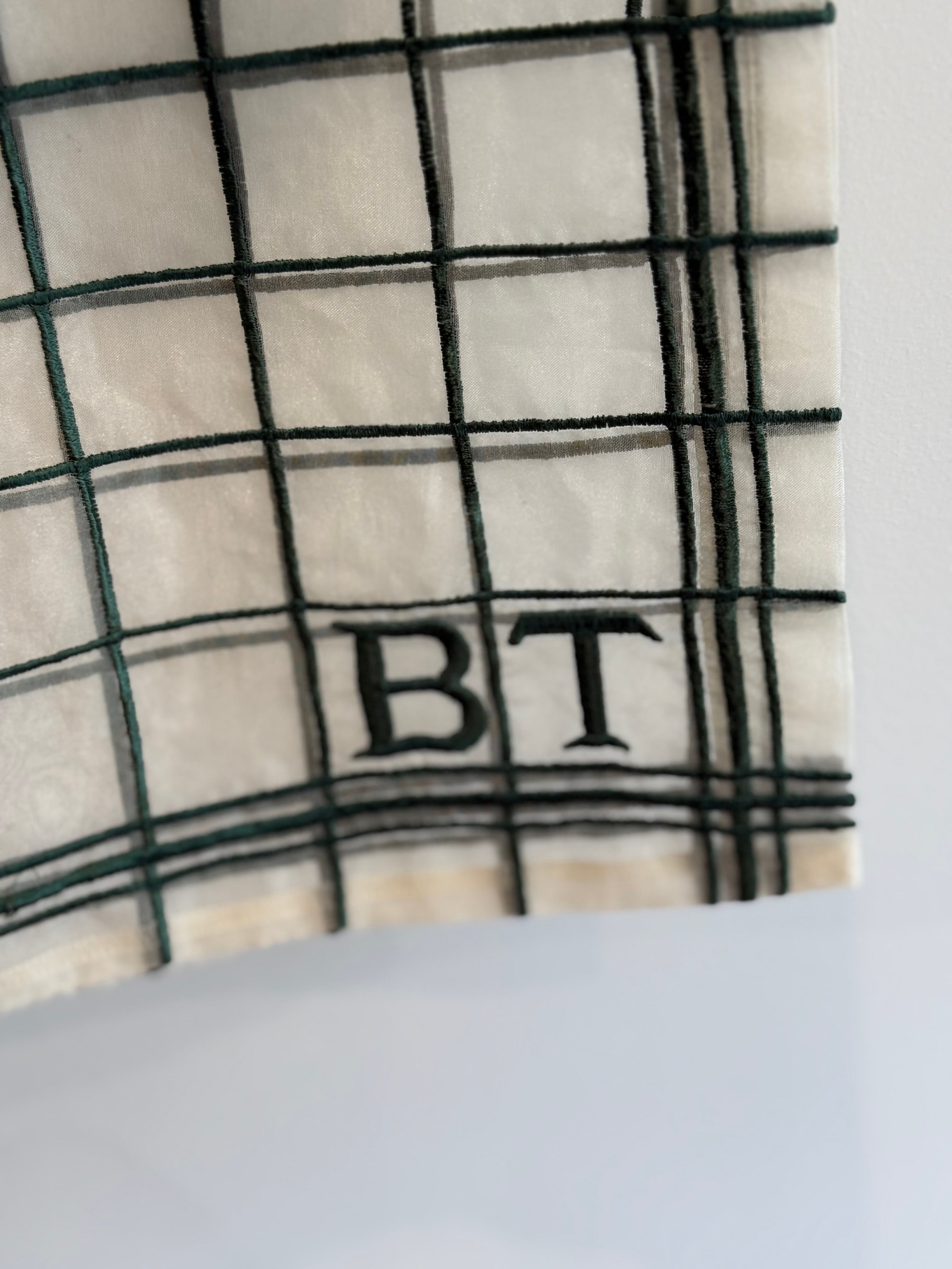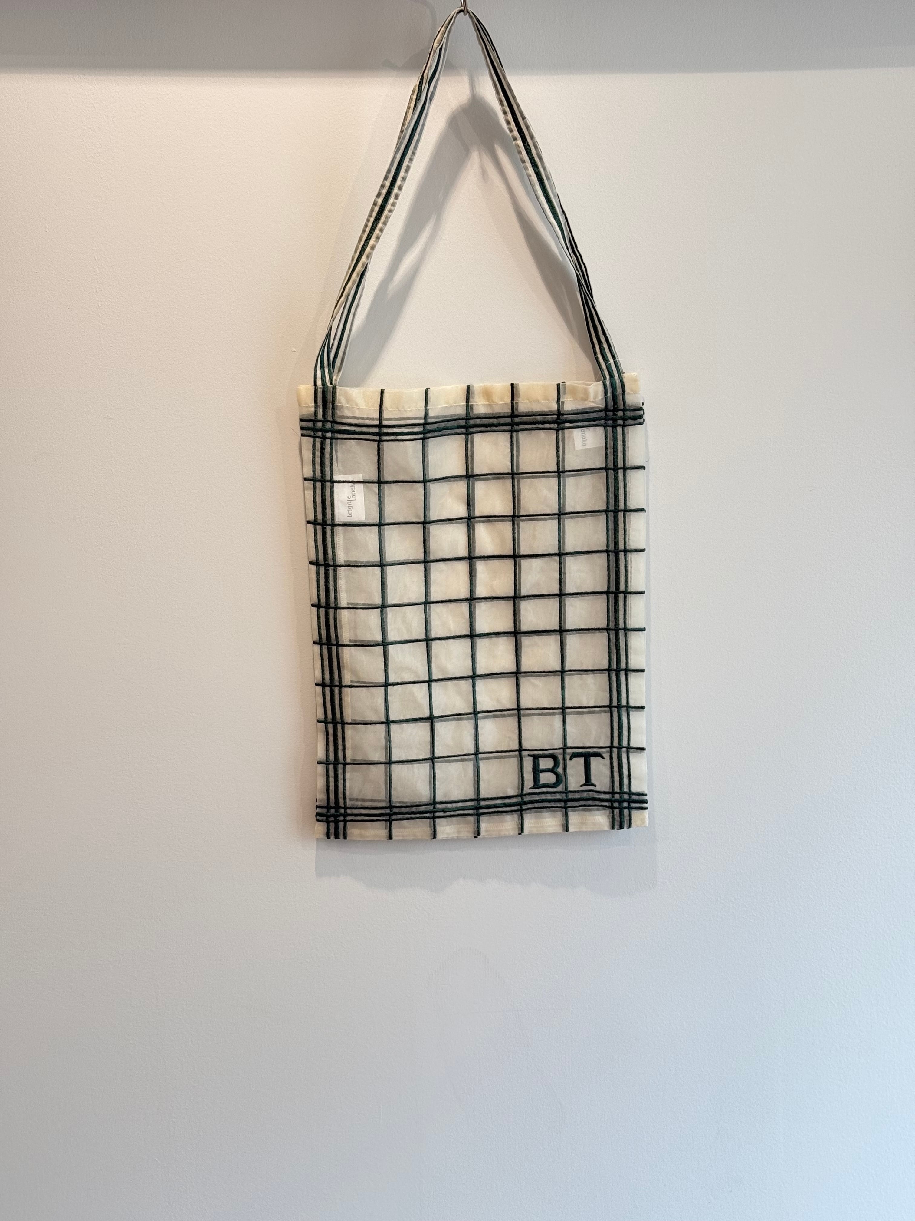 グリーンのチェック柄が刺繍されたホワイトのオーガンザ素材を使用しています。