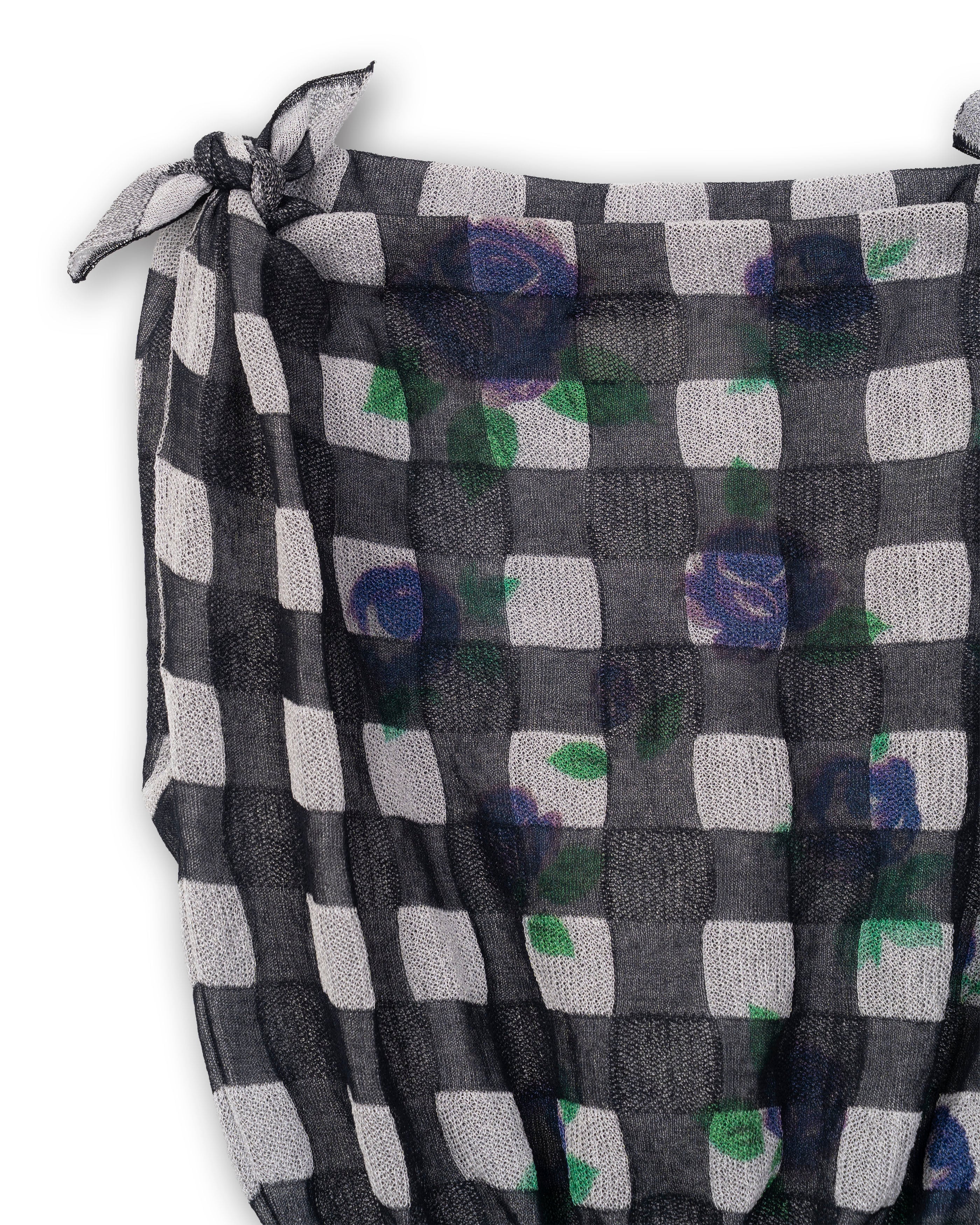 ギンガムチェックにオリジナルの花柄をのせたニットトップ。